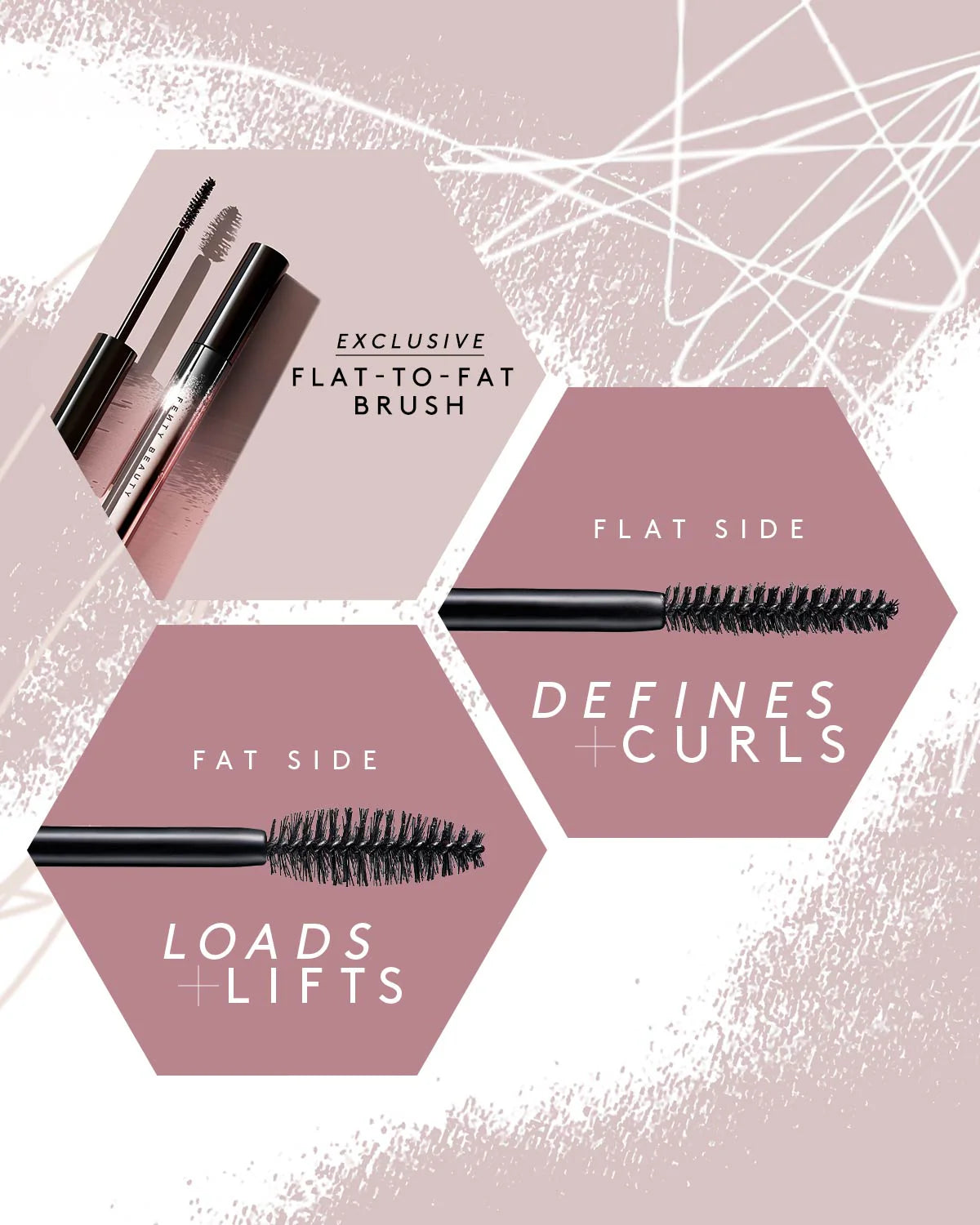 Full Frontal’s lightweight, ultra black formula was specifically paired with an exclusive flat-to-fat brush: The FAT side holds max product to quickly load and lift lashes; the FLAT side defines and curls. And thanks to the round, pointed tip, you can load up and reveal every little lash you never knew you had. We’re talking flat to fat… just like that.