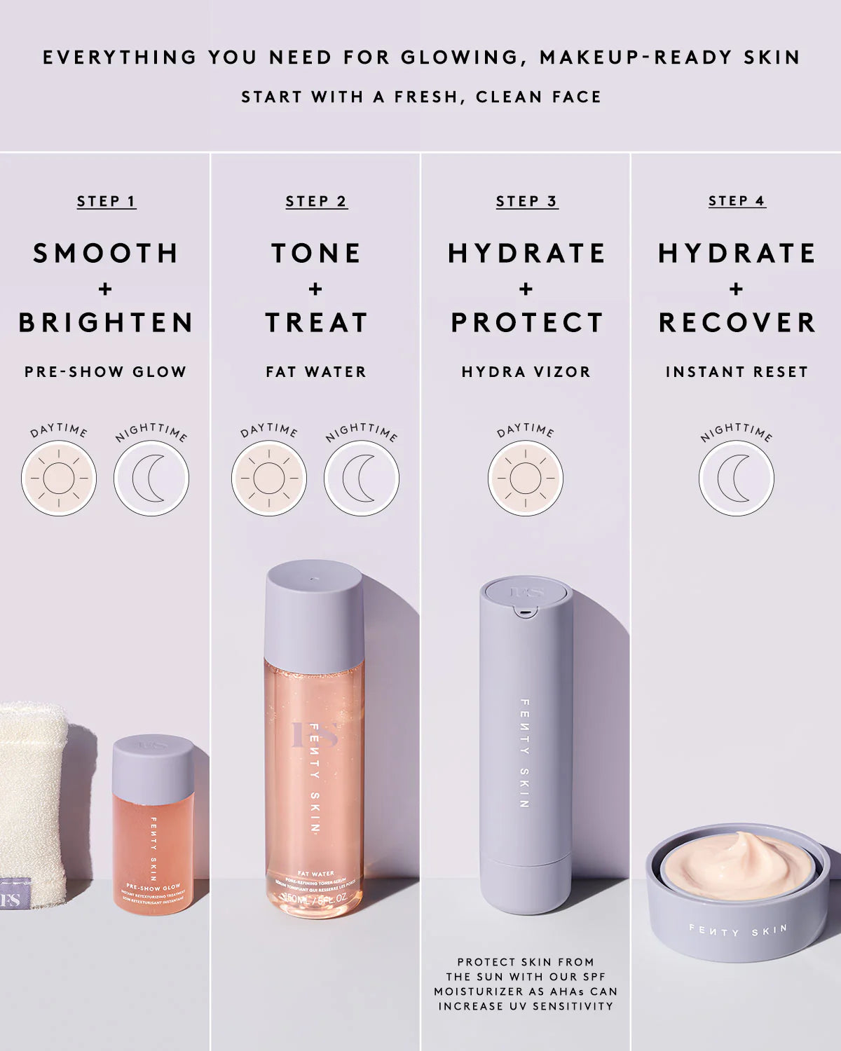 Wet reusable applicator and your face with water (we love to use it in the shower!). Pour a dime-sized amount of solution into the center of the wet applicator. Gently scrub face with the applicator for 30–60 seconds, working the solution into a plush lather. Rinse, pat dry, then follow with toner. If using during the day, make sure to follow up with Hydra Vizor to protect your skin from the sun as AHAs can increase UV sensitivity. If using at night, make sure to remove your makeup beforehand with Total Cleans'r, and then follow up with Instant Reset after use.