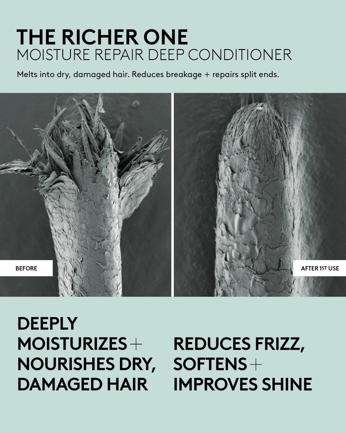 Make sure The Richer One Moisture Repair Deep Conditioner is evenly distributed throughout the hair before rinsing out.