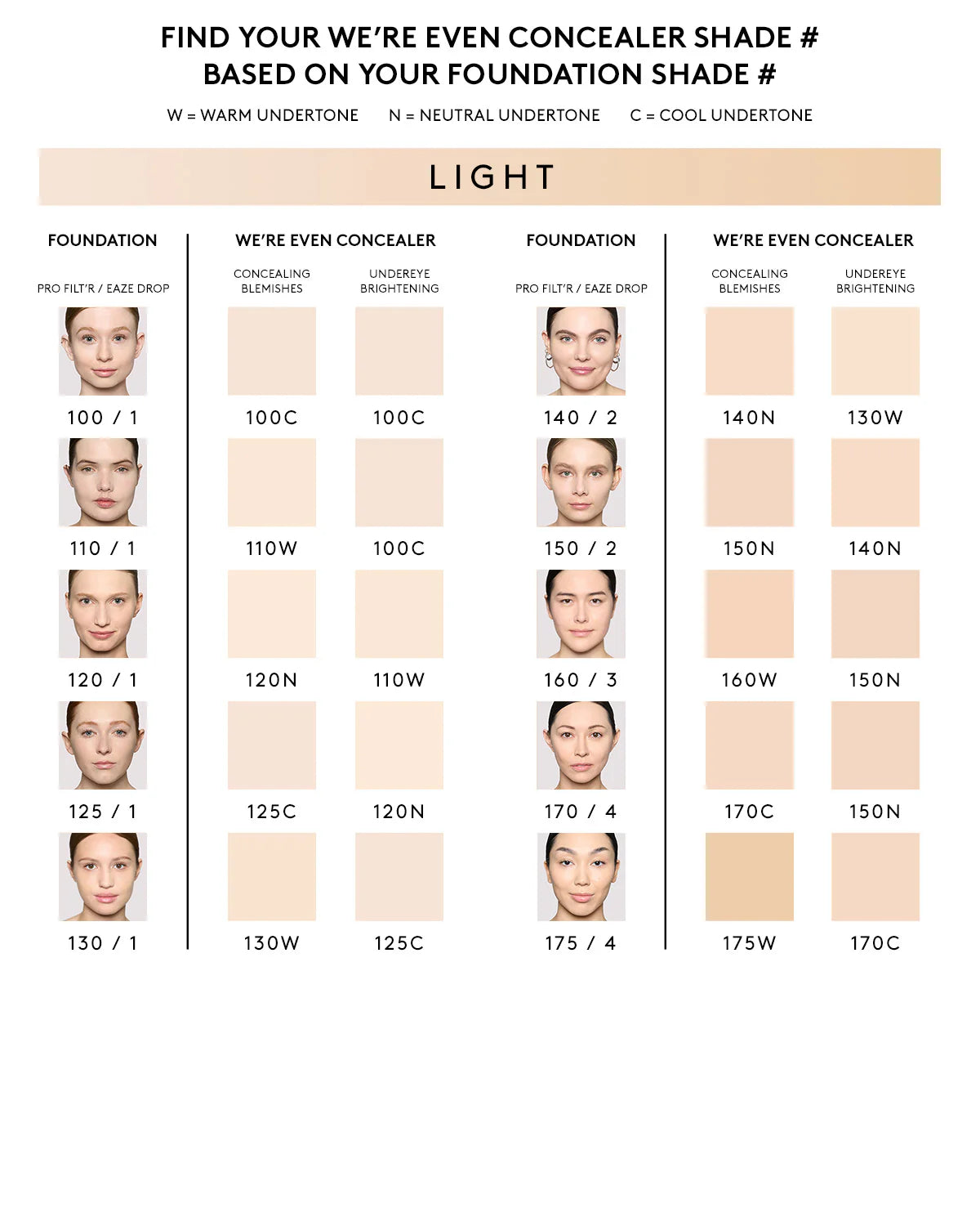 Do less, but get more with We’re Even Hydrating Longwear Concealer—the ultimate makeup-meets-skincare hack. It melts into skin, instantly evening, brightening and hiding dark circles + puffiness for up to 12 hours. Available in 50 buildable medium coverage shades with a second-skin finish.